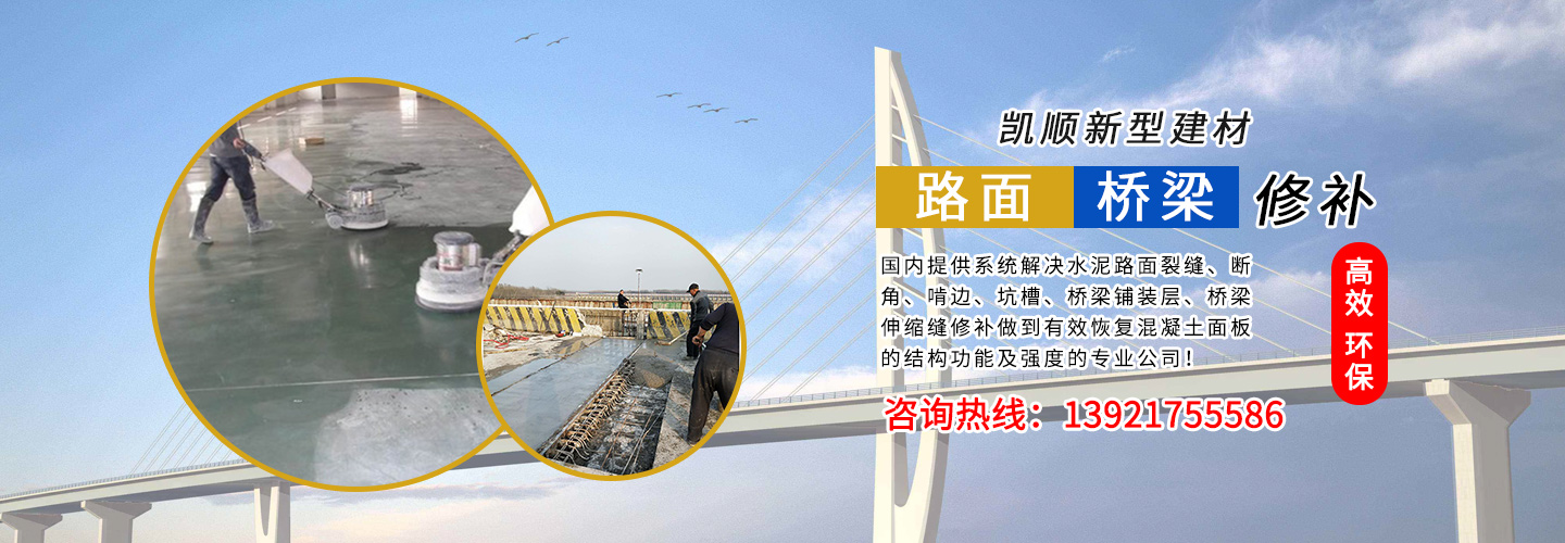 江蘇凱順新型建材有限公司是國內(nèi)提供系統(tǒng)解決水泥路面裂縫、斷角、啃邊、坑槽、橋梁鋪裝層、橋梁伸縮縫修補做到有效恢復(fù)混凝土面板的結(jié)構(gòu)功能及強度的專業(yè)公司!為市政工程、高速、國道、省道、縣鄉(xiāng)道路的改造及大修、中修等大型工程提供了快速、高效、環(huán)保、經(jīng)濟系統(tǒng)方案和技術(shù)支持!